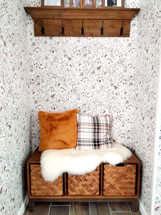 Personnellement j’ai choisi une palette Naturelle & Rustique pour mon entrée ainsi que le salon qui est dans la continuité. Des teintes chaudes de marron, orangé et ocre. Des matières naturelles comme le pin et le bambou.